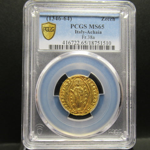 1346-64年 イタリア アカイア 1ゼッキーノ金貨 MS65 PCGS