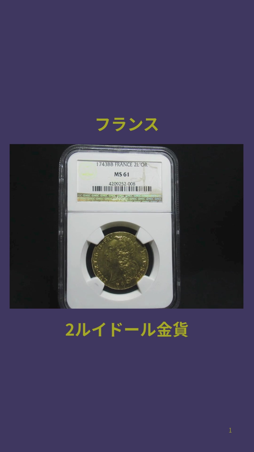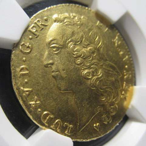 1743年 フランス 2ルイドール金貨 ストラスブール造幣局(BB) MS61