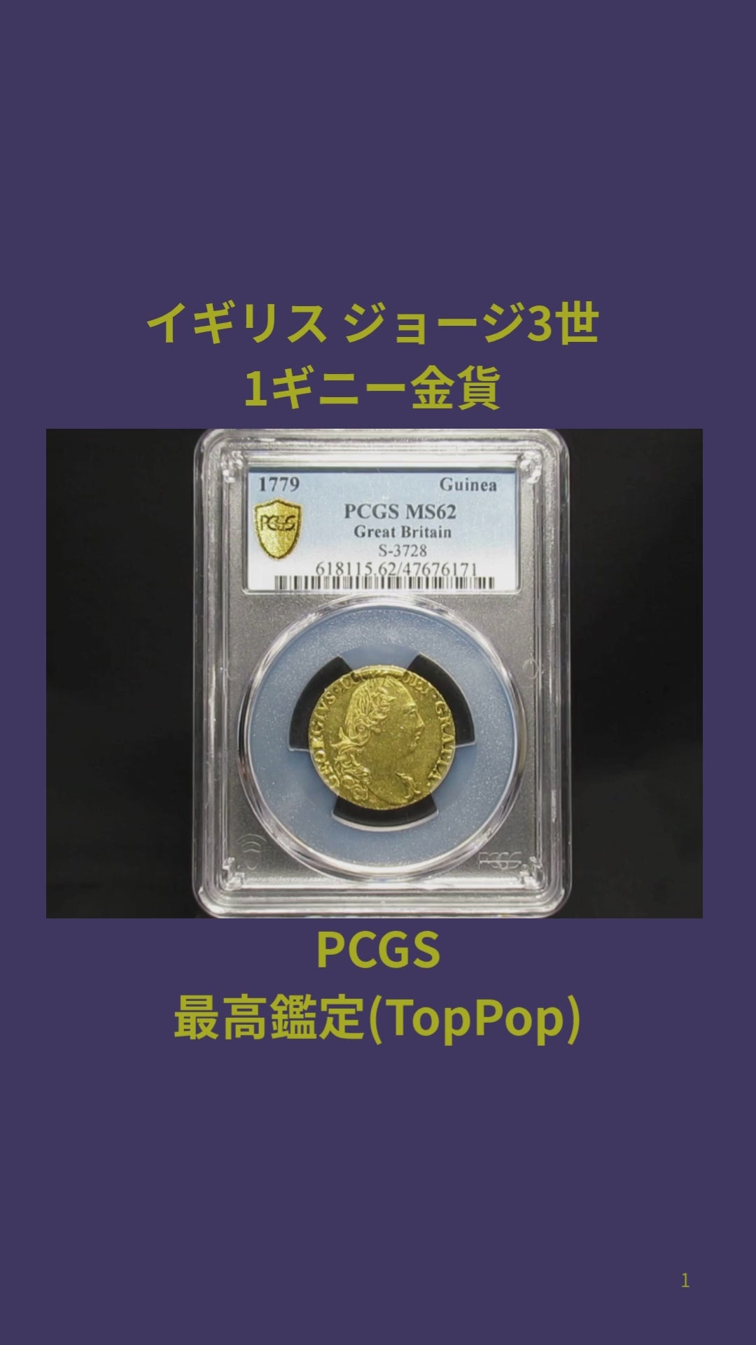 【TopPop】1779年 イギリス 金貨 1ギニー ジョージ3世 MS62 PCGS 最高鑑定