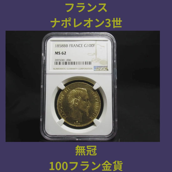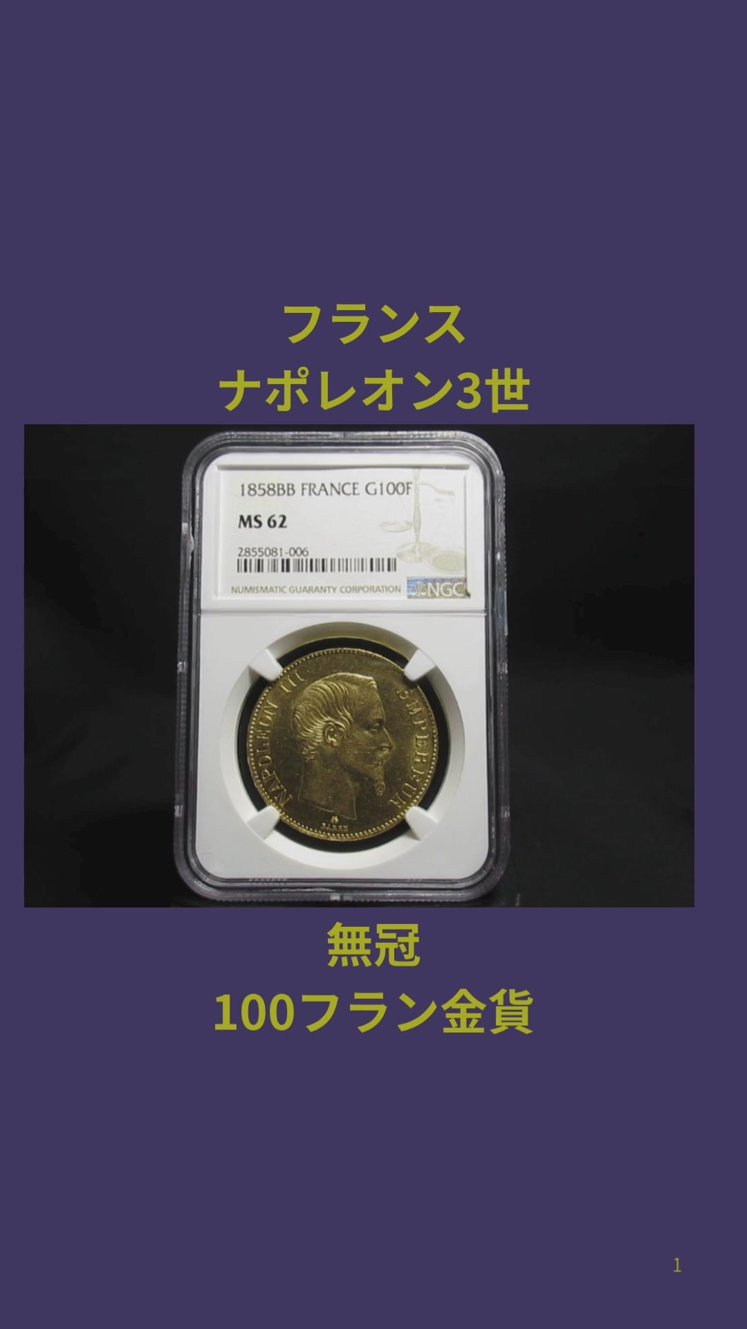 1858年BB フランス ナポレオン3世 無冠 100フラン 金貨 MS62 NGC