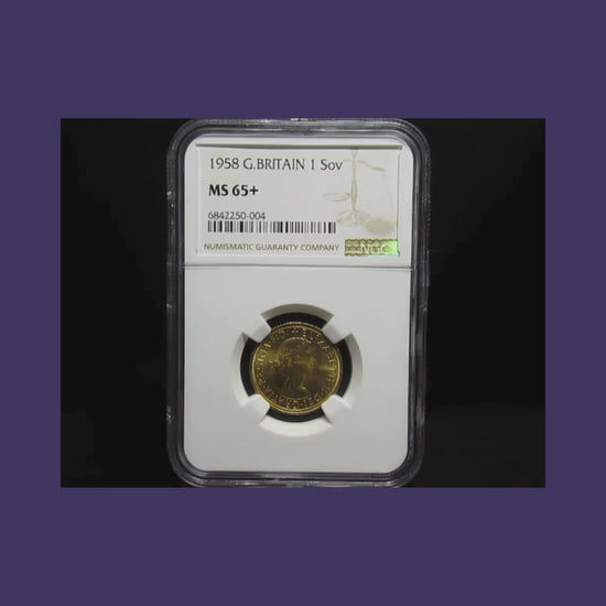 1958年 イギリス 金貨 1ソブリン エリザベス2世 MS65+ NGC