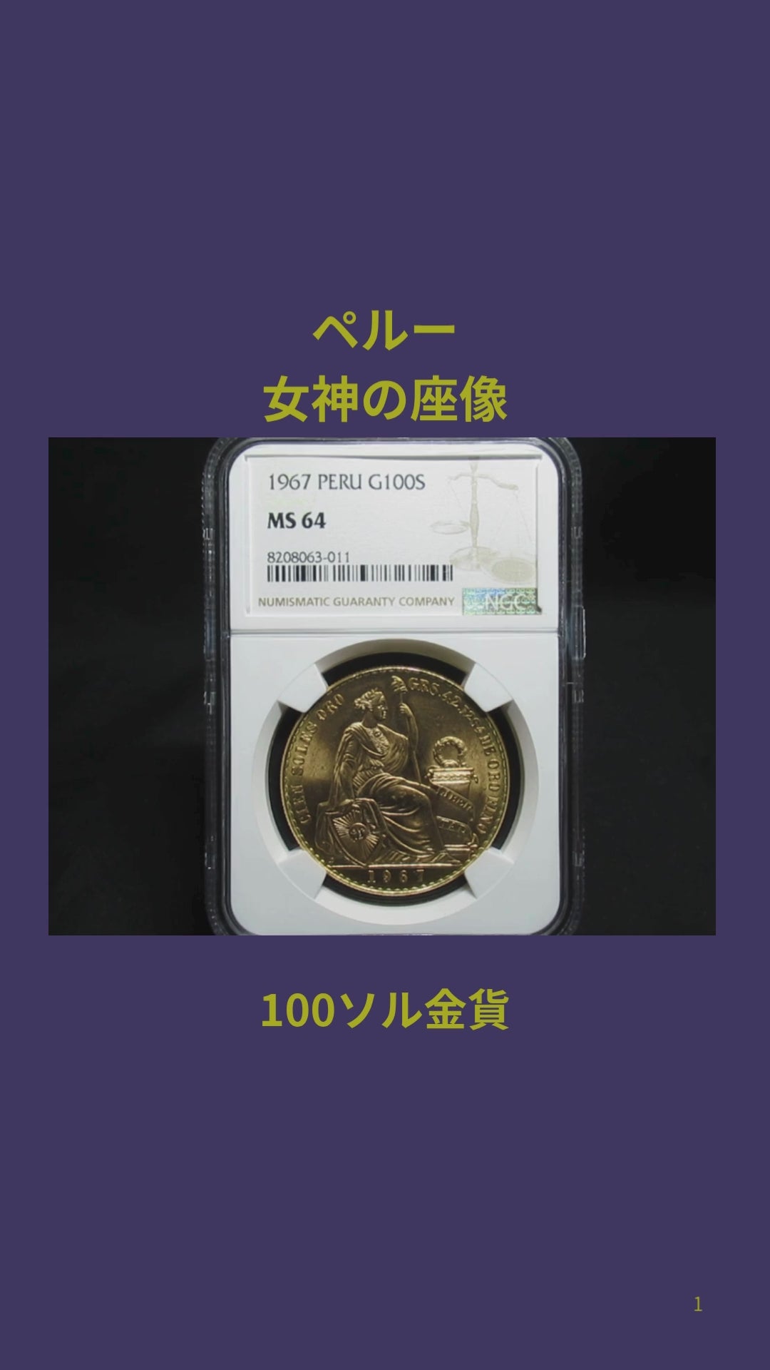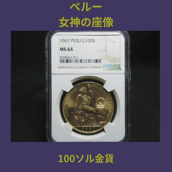 1967年 ペルー 100ソル 金貨 MS64 NGC 女神の座像