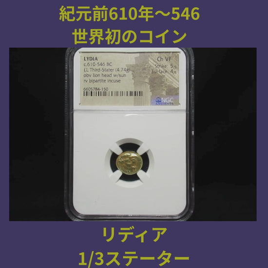 この特別なリディアの1/3ステーターは、紀元前610年から546年の間に鋳造された貴重なコインです。状態評価Ch VFを誇り、Strike(打刻状態、正確さ)は5/5、Surface(表面状態)は4/5という高評価を受けています。このコインは、歴史の深みを感じさせる優れたデザインと精巧な作りが魅力です。世界で最初に作られたコインと言われています。手に取ることで、古代リディアの文化や交易の歴史を体感できる貴重なアイテムとなるでしょう。