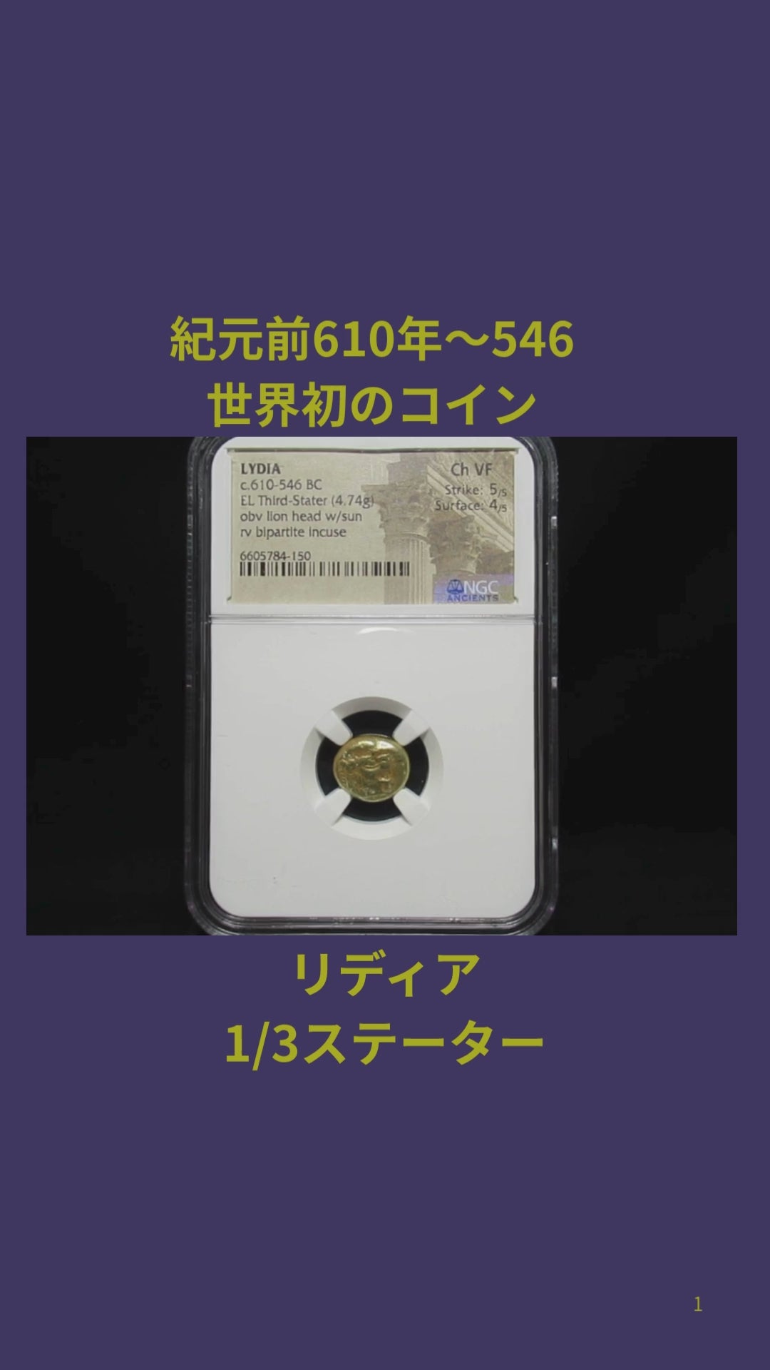 - このエレクトラム貨はコレクションとしての価値が高いので、特別な場所に大切に保管してください。