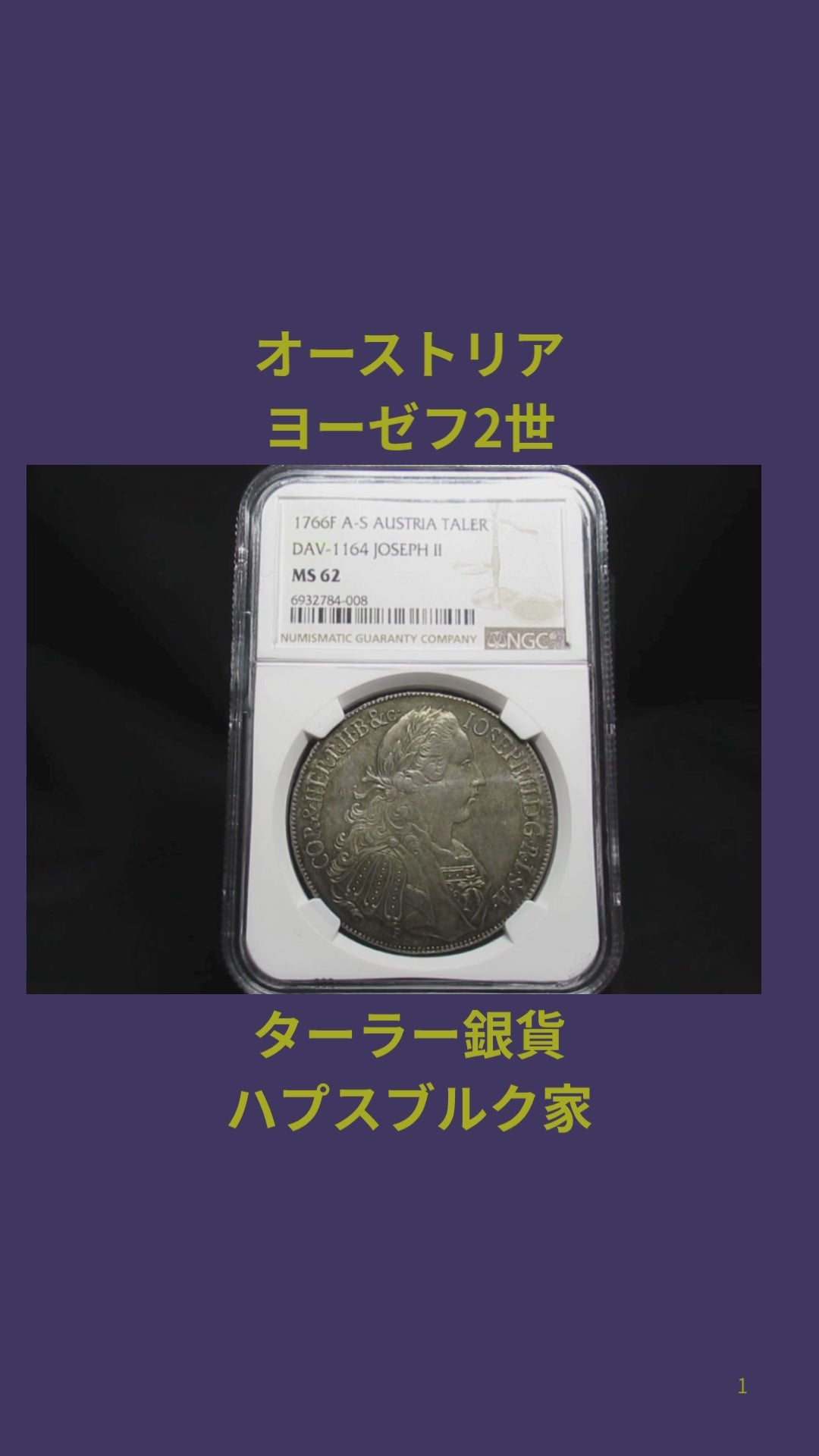 1766年 オーストリア 1ターラー銀貨 MS62のご紹介です。